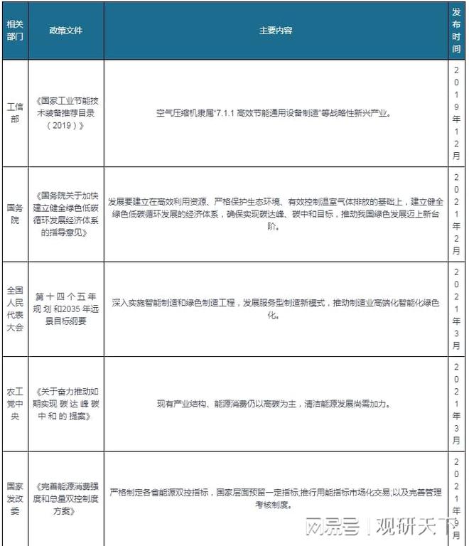 能效要求日益提升。節(jié)能減排是我國(guó)經(jīng)濟(jì)發(fā)展從高速增長(zhǎng)到增長(zhǎng)轉(zhuǎn)變要完成的任務(wù),也是實(shí)現(xiàn)“碳中和”的必然手段之一。因此隨著不斷重視節(jié)能減排,“碳中和”進(jìn)程不斷推進(jìn),對(duì)空氣壓縮機(jī)行業(yè)的節(jié)能要求日趨嚴(yán)格,對(duì)空氣壓縮機(jī)能效等級(jí)的追求也進(jìn)入新的階段。